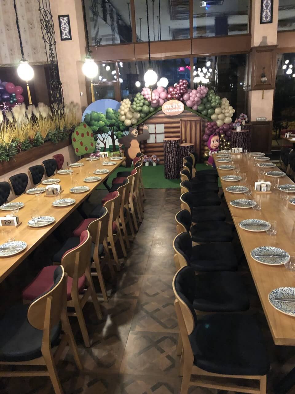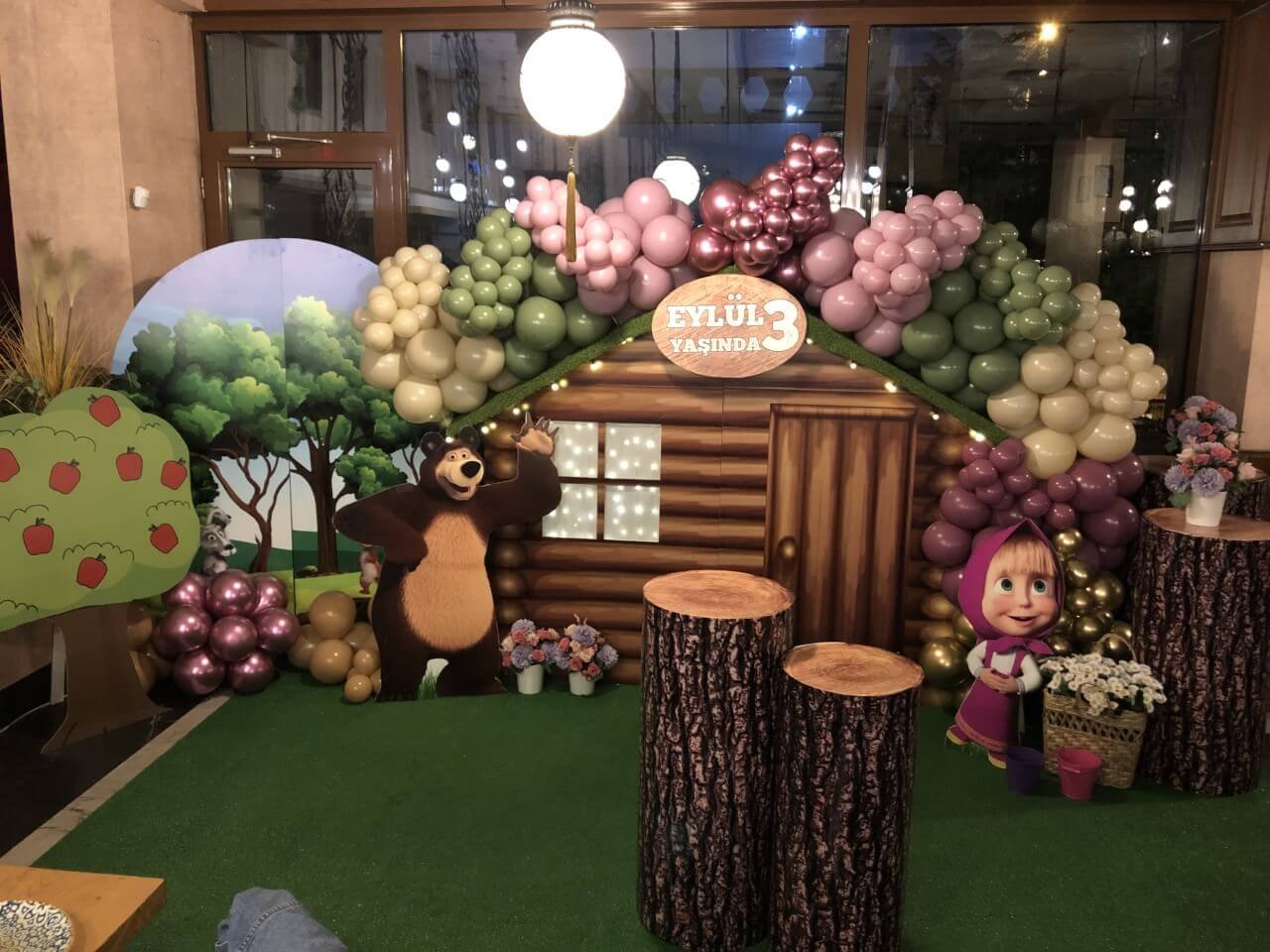 Masha ve Koca Ayı konseptimizle çocuklarınızın doğum günlerinde unutulmaz bir deneyim yaşamasını sağlıyoruz. Konseptimizde Masha ve Koca Ayı karakterleri, doğum günü partisi alanında çocuklarınızla birlikte eğleniyor. Parti alanı renkli balonlarla süslenmiş, özel olarak hazırlanmış masalar, sandalyeler ve parti malzemeleriyle donatılmıştır.